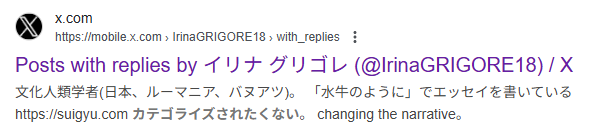 ここで思い出すのは、イリナ・グリゴレ氏がTwitterのbioに「カテゴライズされたくない」と記載していた時期があるということである。文化人類学者、ルーマニア出身、女性など、わかりやすくカテゴライズすることはいくらでもできてしまう。しかし、彼女はそれを拒否し、「イリナ・グリゴレ」としての存在を文章に落とし込んでいるのだ。ゆえに、オオカミも雪国もカリンも青森も全てが必要であるし、だからこそカテゴライズの隙間に零れ落ちるものも拾いきった景色を描出ことができるのだろう。