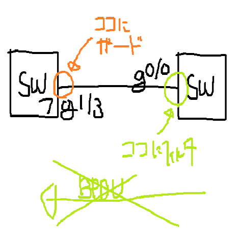 BPDUフィルタ:BPDUを受信できないし送信しない
